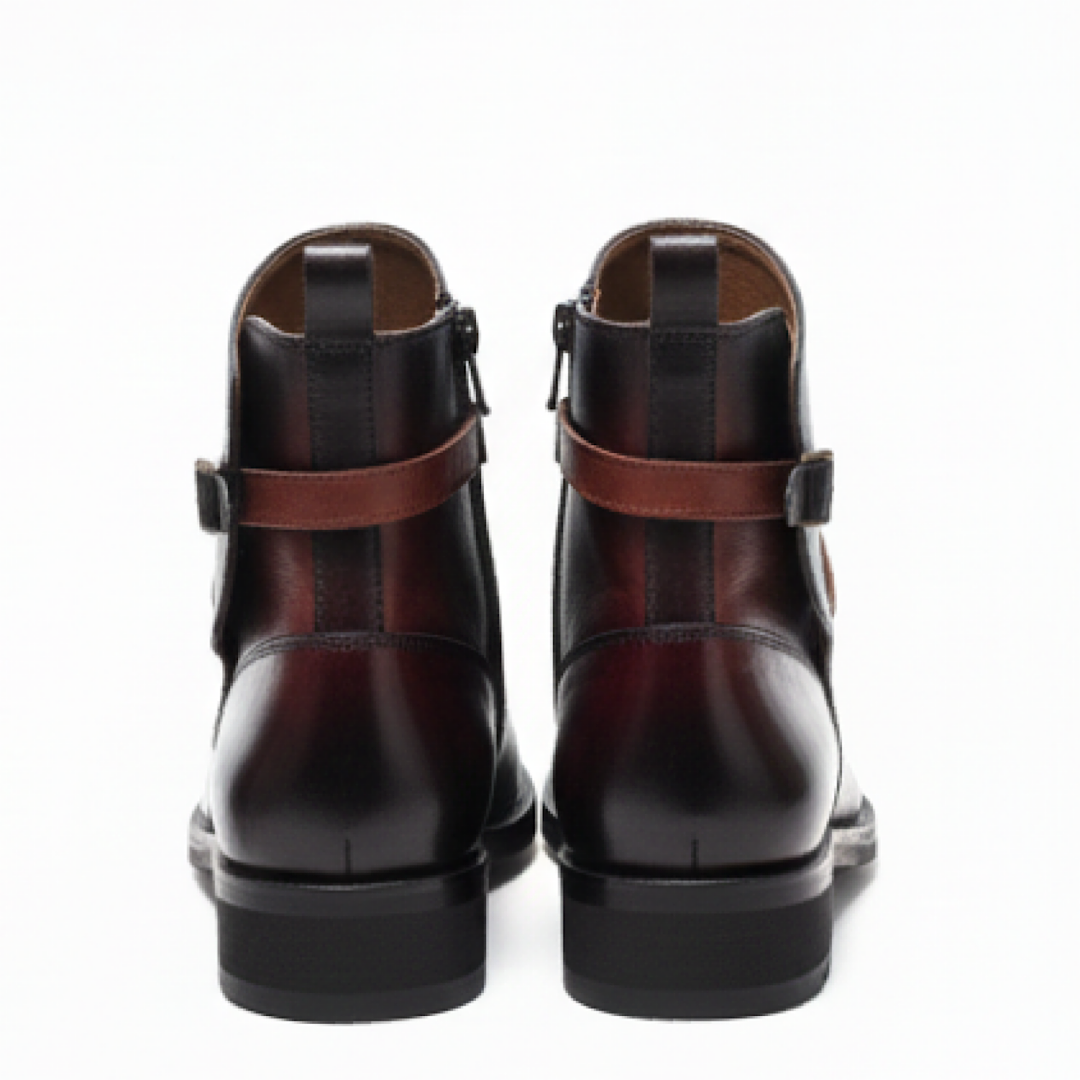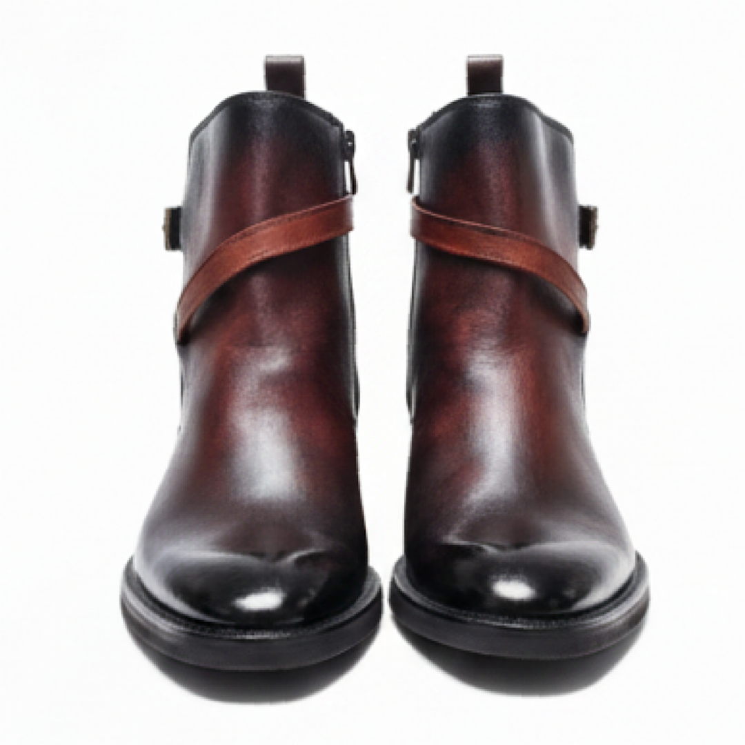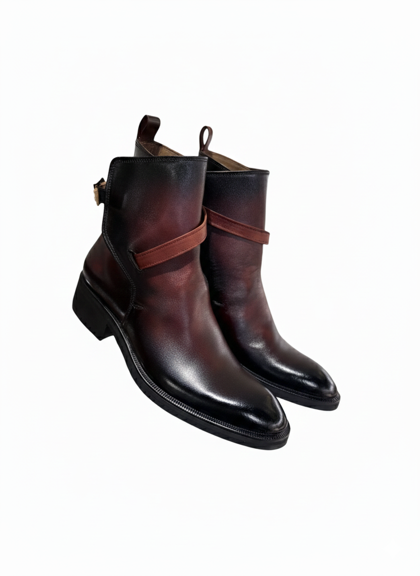 پوتین تمام چرم دستدوز و دسترنگ مدل مونترال شرابی کد 1290
