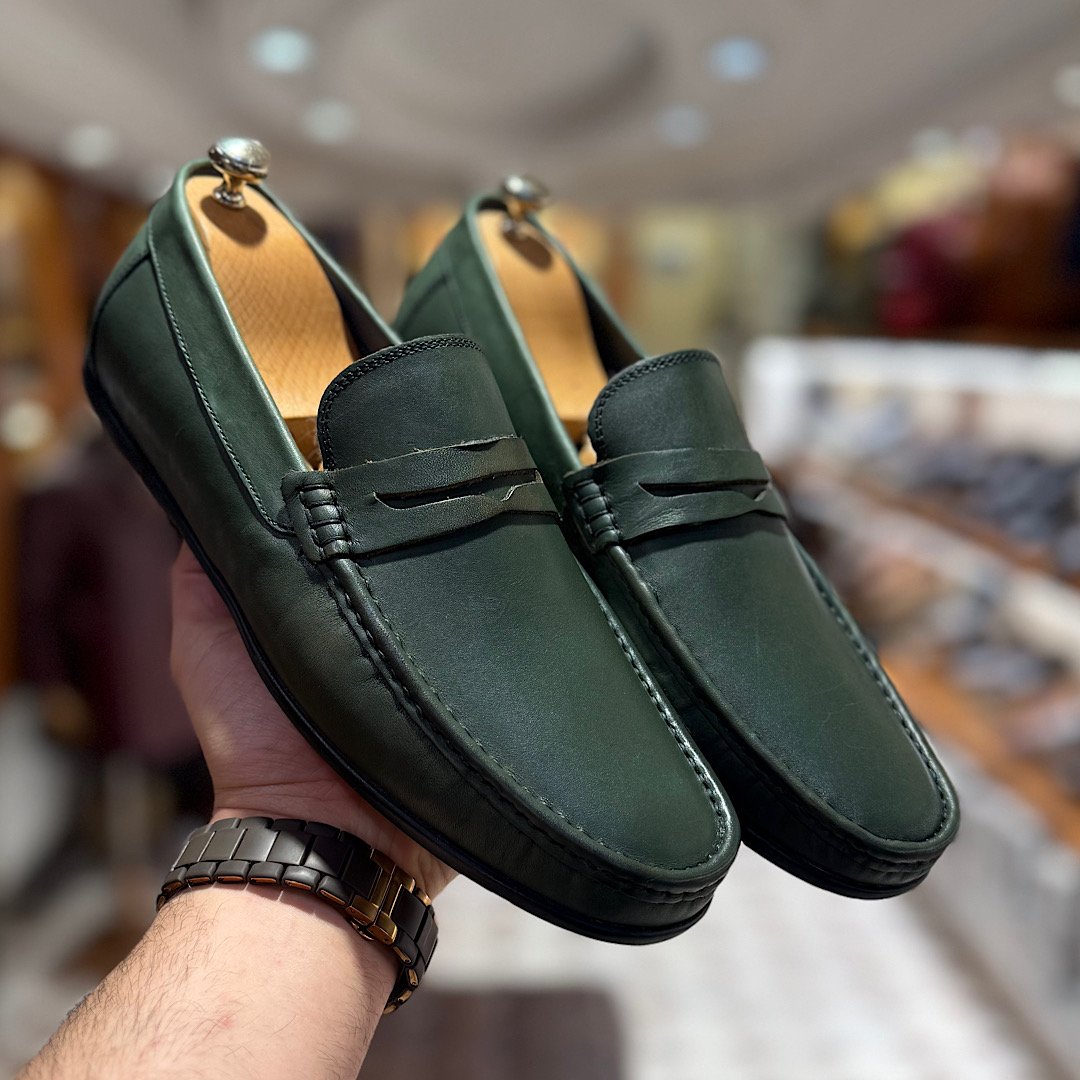 کفش فانتوف چرمی مردانه سبز دسترنگ کد 1486