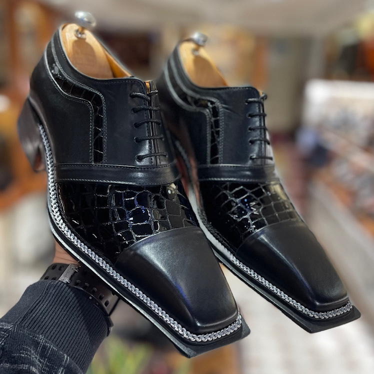 پاشنه لایه های چرم با برش دستی سفارشی مکعبی vipزیبایی این کفش رو دوچندان کرده است