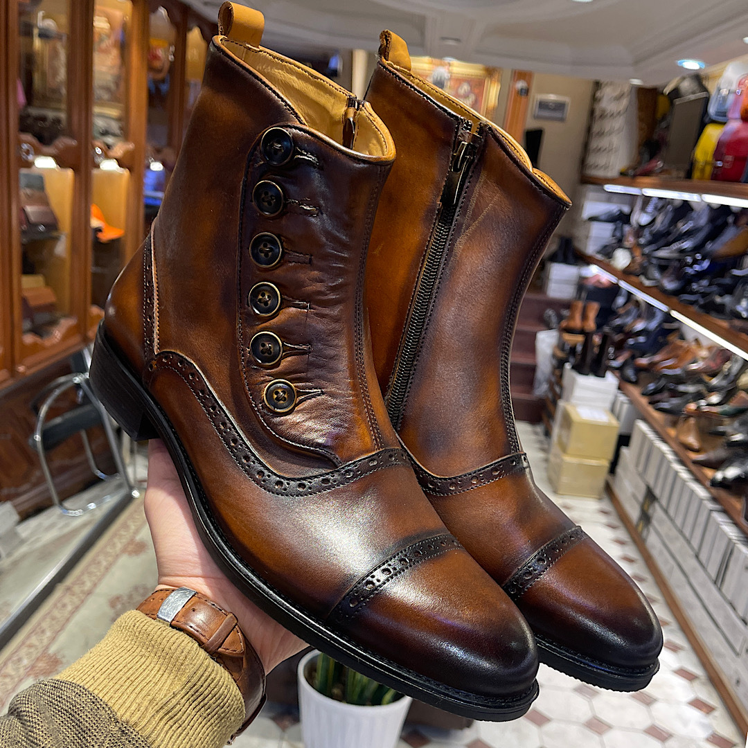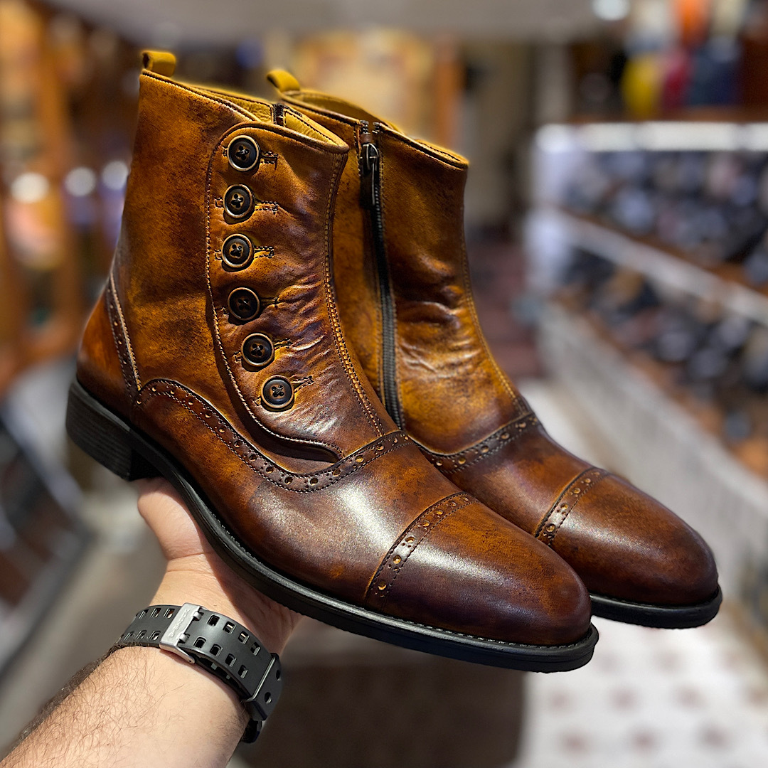 پوتین تمام چرم دستدوز مردانه مدل آمستردام